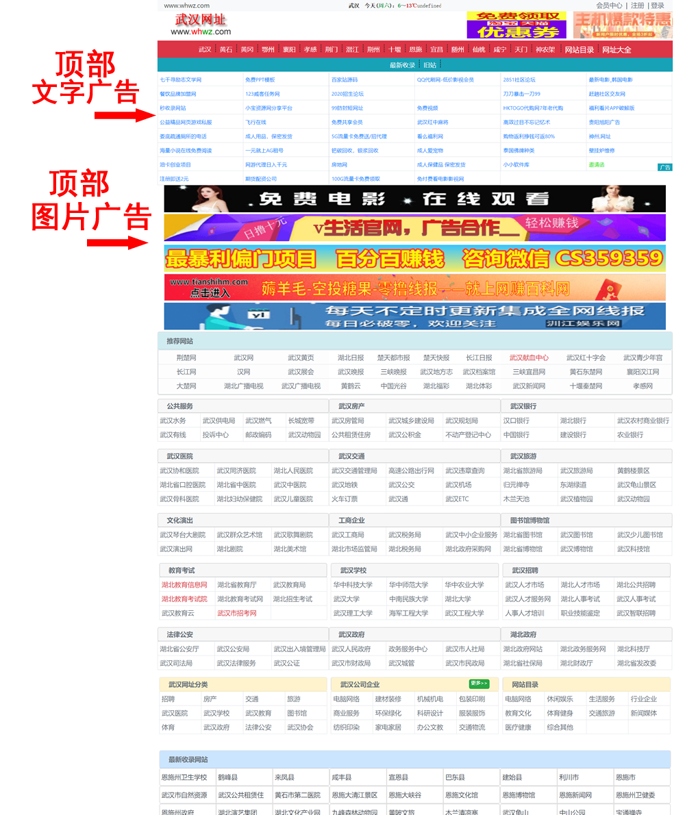 | 文字廣告 | 首頁頂部(見下面示意圖) | 12字 | 30元/年 |